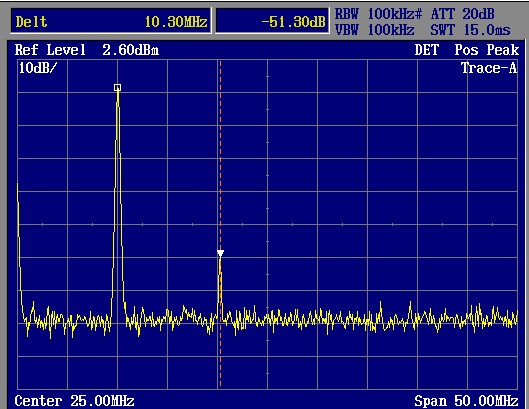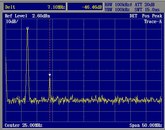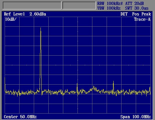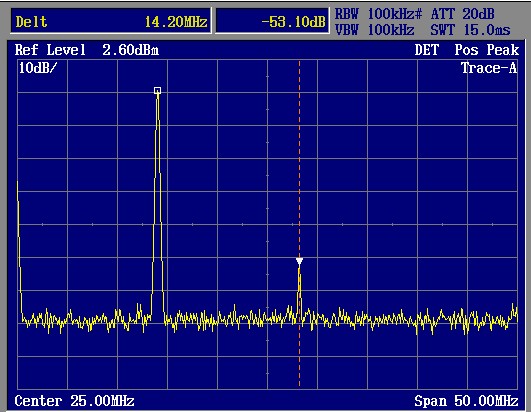 と一通り見てきましたが、第二高調波で45~50dBのようです。何故か24MHzは(元気がなくて:笑)低いですがそれ以外は見られないので、けっこう綺麗と思ったのもうなずけます。勿論、実用に供する時は当然のことながら外付けLPFが必要になってきますが。