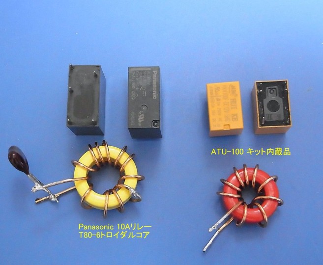 このキットをそのまま組み上げて、動作が上手くいったらパーツの容量アップで「ATU-200化」にトライするという魂胆です。なので、部品もどんなものを使っているのか一応調べておきます。まずはトロコアとリレーです。先達の情報によるとコアの損失が大きいのではないかと言われており、調べる必要が有りそうです。