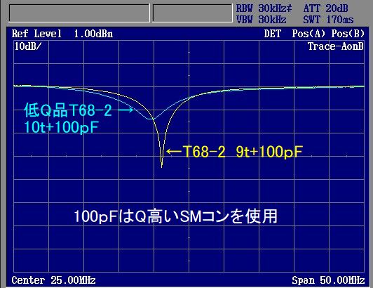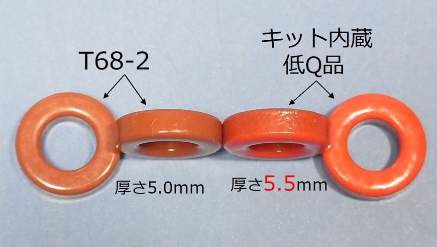 上図から、明らかに低Q品は低級品であることが解ります。また、どうもキット内蔵低Q品の方が、厚みが厚いので、コイルが基板スリットに実装しずらいという情報もありまして、この点からも正規品に変えておくのがいいかもしれません。