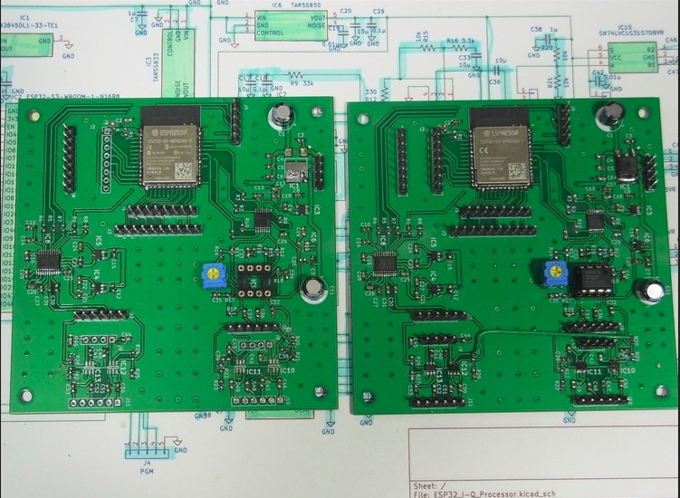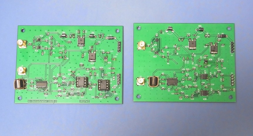 上図は直交変調器と復調器です。右はMODで左がDEMOですね。いずれも超高速動作のFF(74AUP1G79/80)の90度位相回路を使いました。この時点では、Q-MOD/DEMO用の90度位相器は、この方法が私にとって一番使いやすく、特性がしっかりしていたからです。